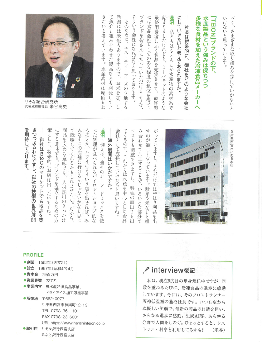 りそな総合研究所発行の「りそなーれ(6月号)」に当社代表取締役社長 蓮沼俊一のインタビュー記事が掲載されました