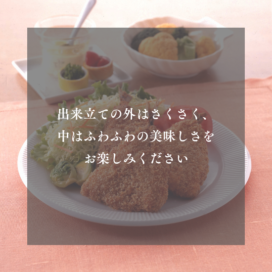 一尾一尾丁寧に処理した新鮮なアジを、サクサクの生のパン粉で包みました。アジ本来の風味と旨みを最大限に活かすため、下処理にもこだわっています。
