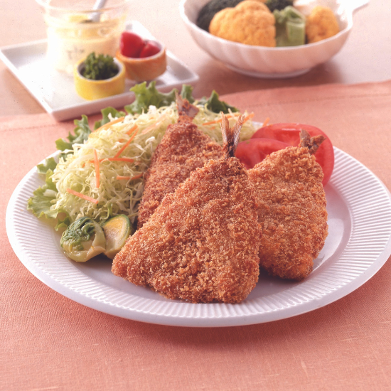 原材料 あじ、パン粉、小麦粉、小麦でん粉、食塩/調味料(アミノ酸)、増粘剤(グァーガム)、乳化剤、着色料(パプリカ色素)