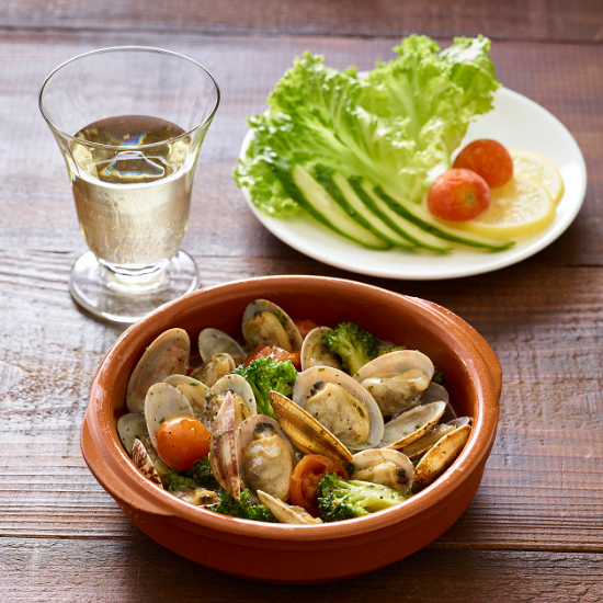 殻つきあさりと彩野菜の