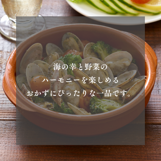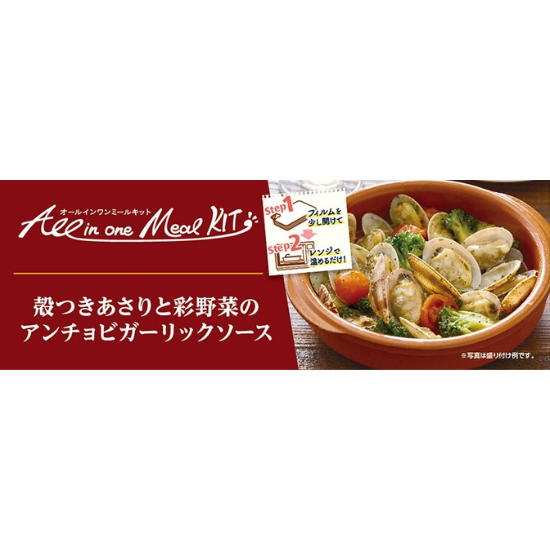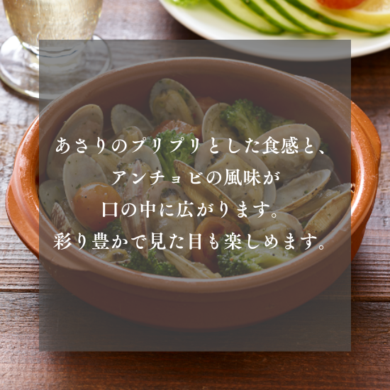 | 商品名 | 殻つきあさりと彩野菜のアンチョビガーリックソース |