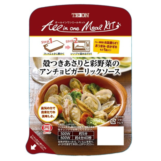 | 原材料 | 殻つきボイルあさり(中国製造)、ブロッコリー(中国産)、トマト(トルコ産)、ソース〔植物油脂(なたね油、オリーブ油)、食塩、魚介エキス(魚介類)、ローストガーリックパウダー、香味食用油、こしょう、乾燥玉ねぎ、レッドベルペパー、パセリ、フライドオニオンパウダー、オレガノ、カキエキス〕 / 調味料(アミノ酸等)、乳化剤、香料 |