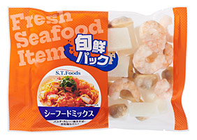 - トマトジュース、はちみつ、シーフードミックスを加え5分ほど煮て、塩、こしょうで味を調えます。