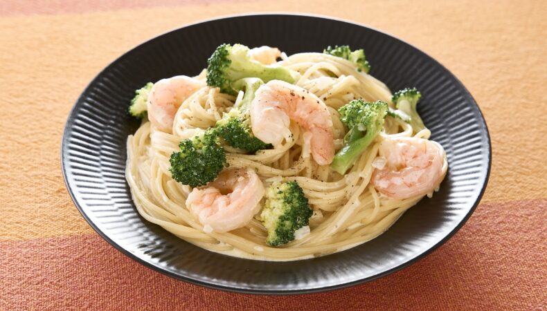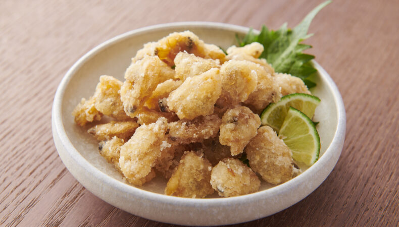 5. 全体を混ぜ合わせて器に盛り、粗びき黒こしょうをふってレモンを添えたら完成です。