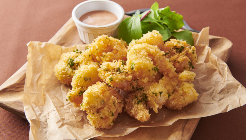 おやつにもお酒のおつまみにもぴったりなポップコーンシュリンプ。ちょっとしたパーティーでのおもてなし料理としてもおすすめです。